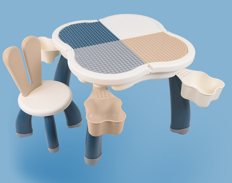 萌兔桌墨藍+兔椅+四收納盒/8701